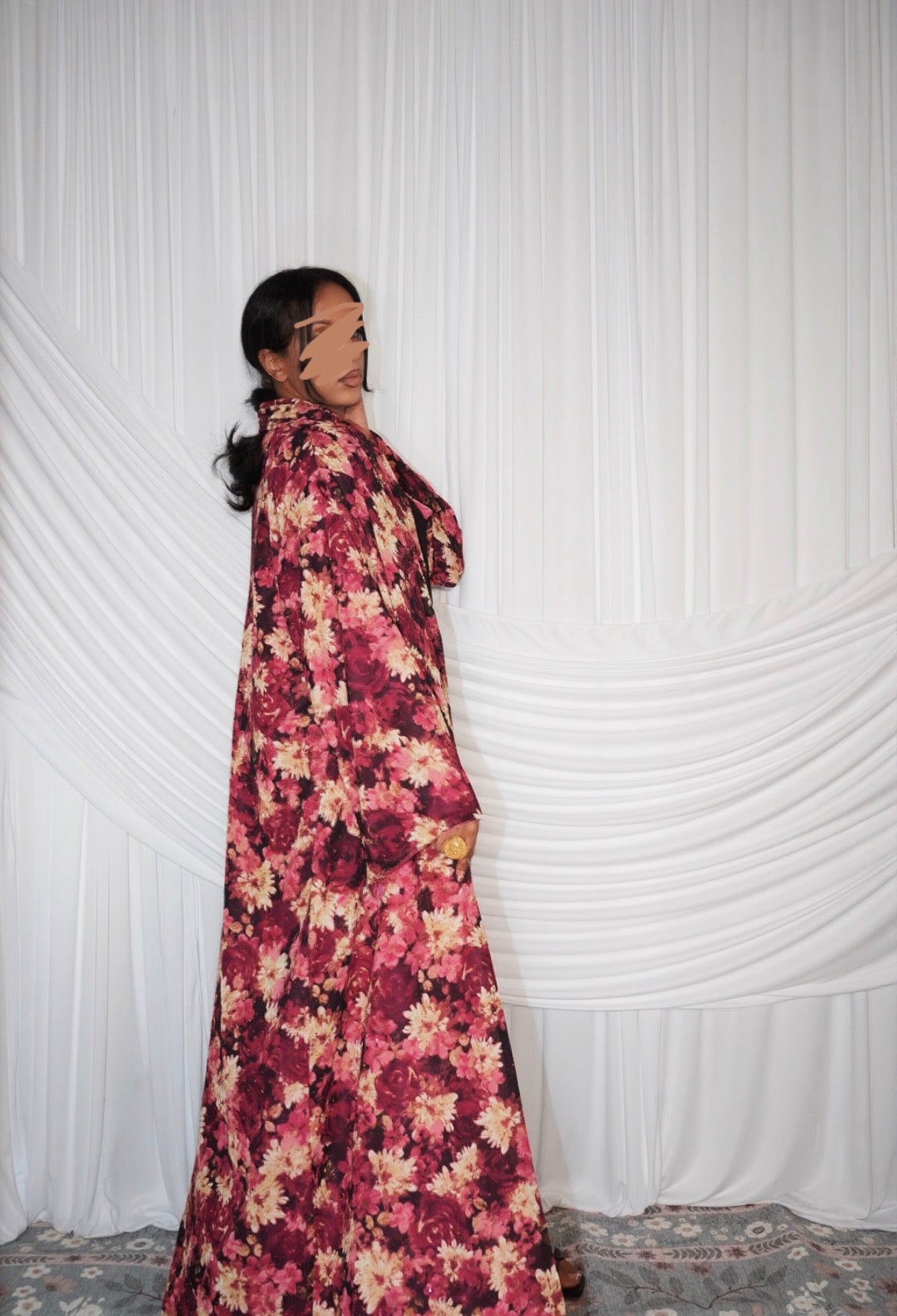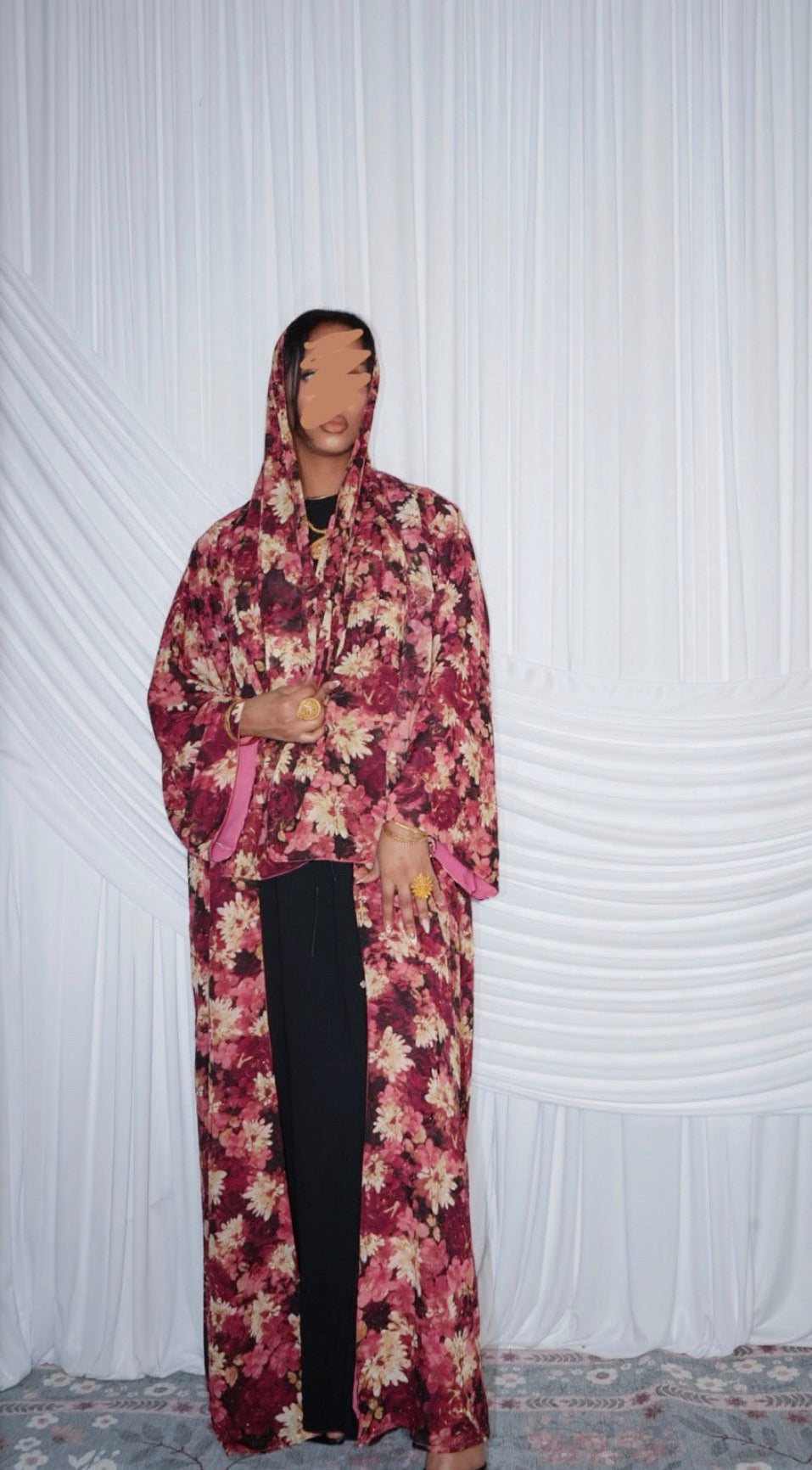 printed chiffon Abaya with matching chiffon hijab. Rhinestone