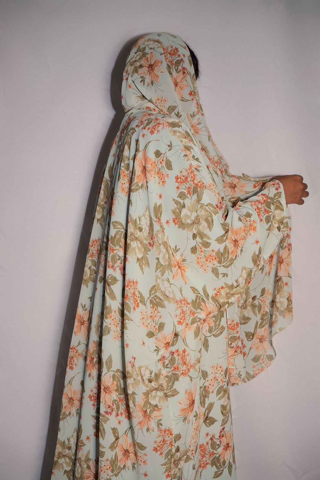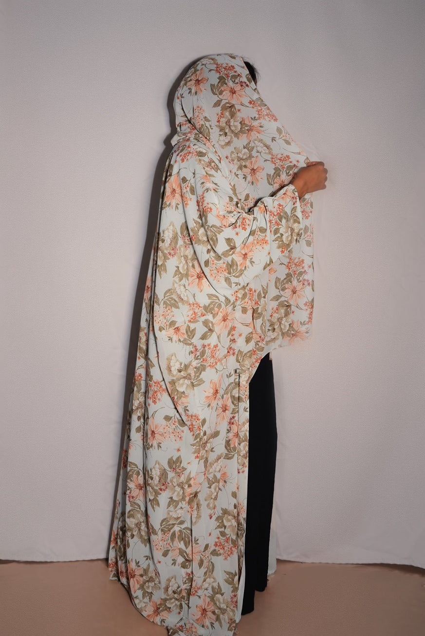 Floral Printed double chiffon Abaya, with matching Hijab.