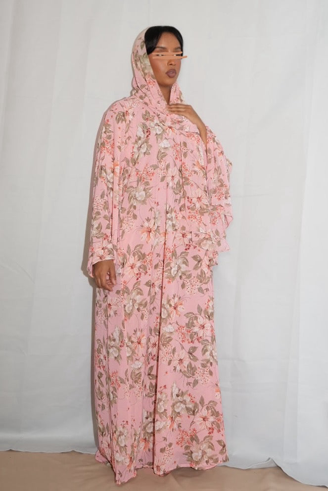 Floral Printed double chiffon Abaya, with matching Hijab.