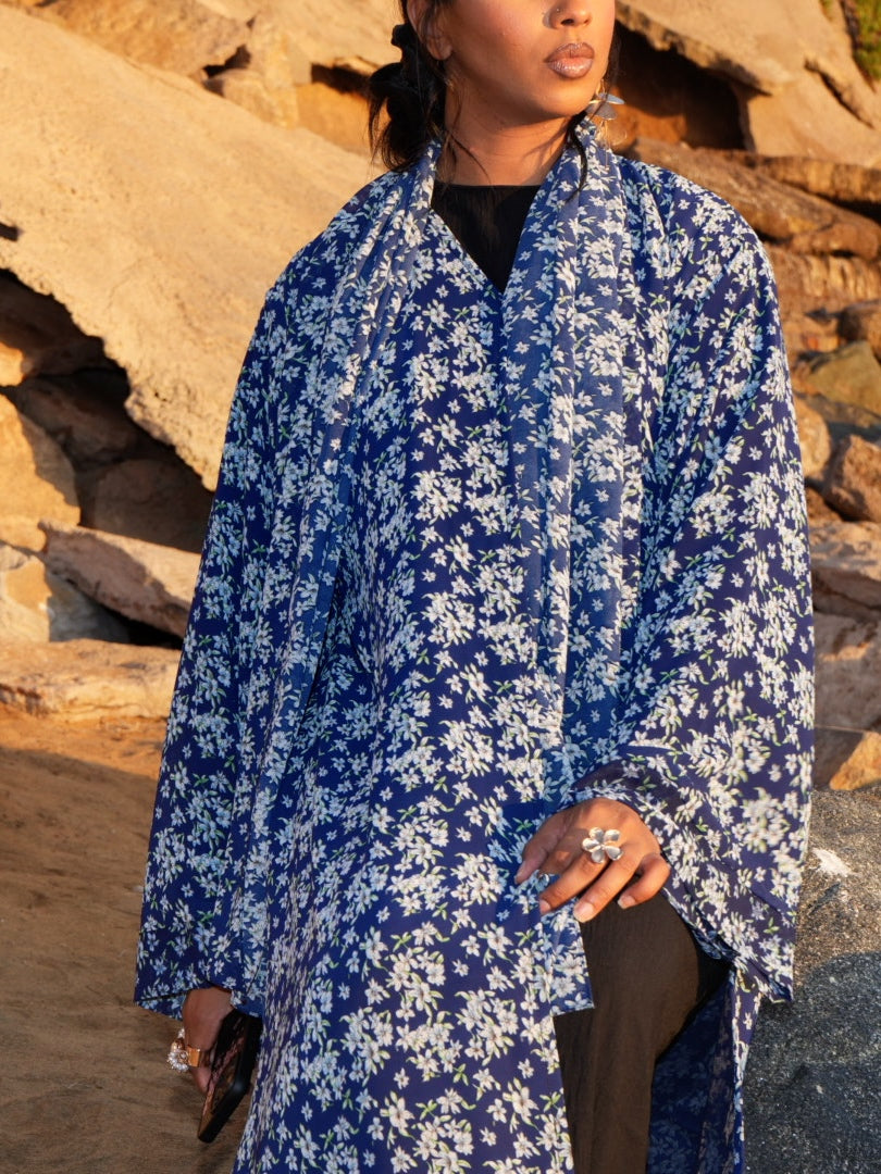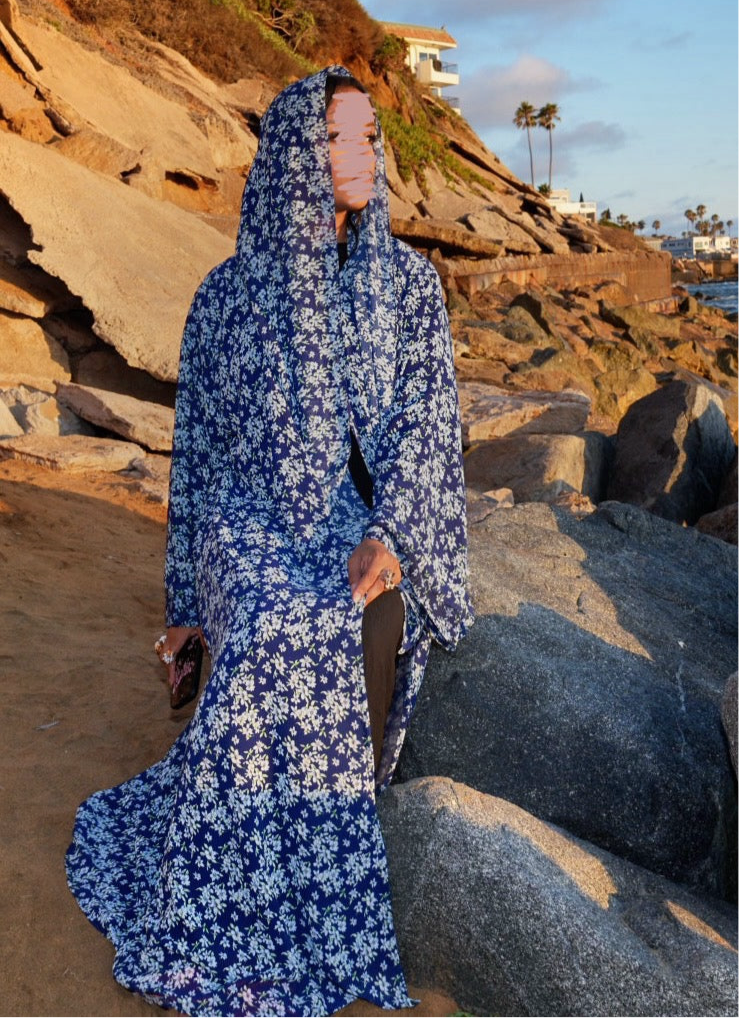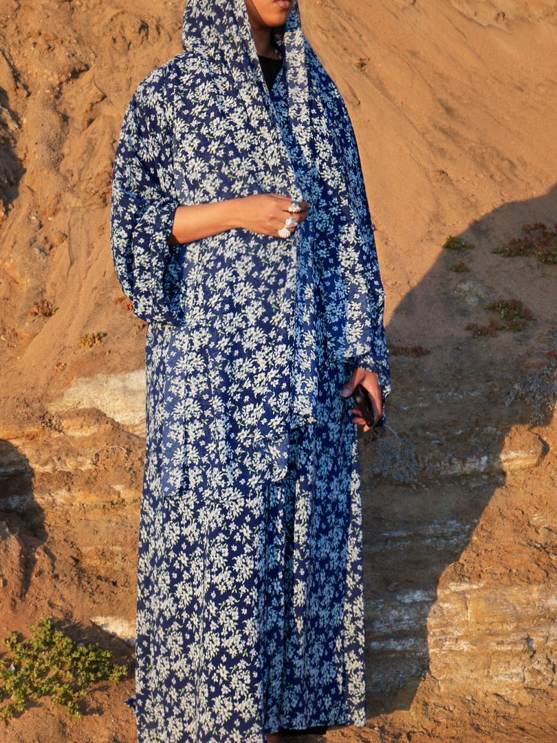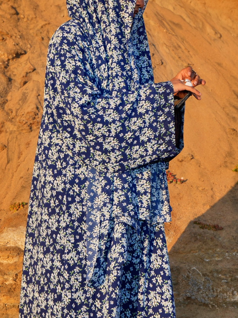 Floral Printed double chiffon Abaya and Hijab.