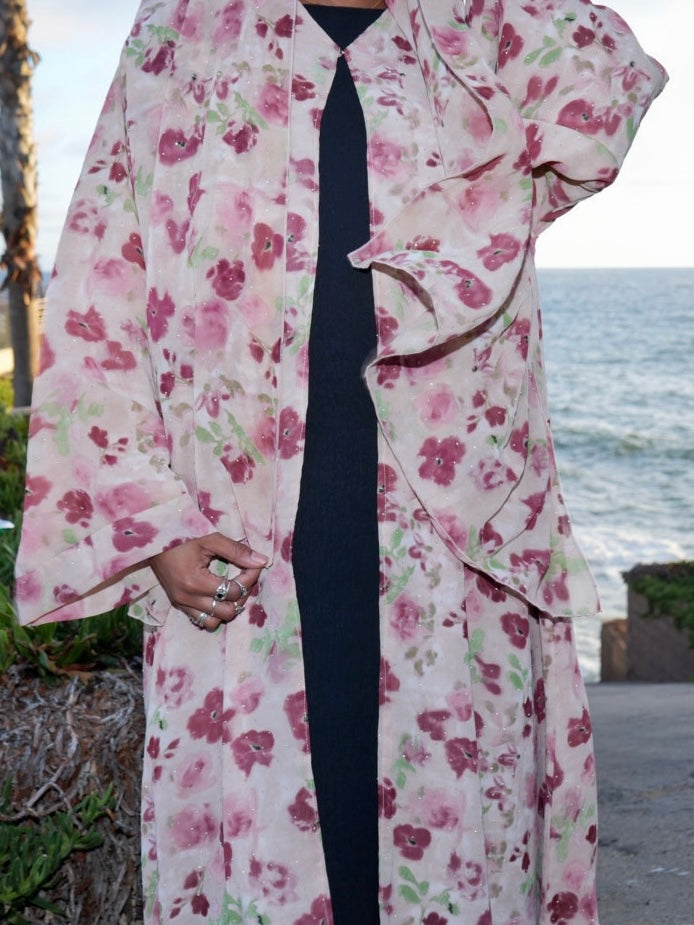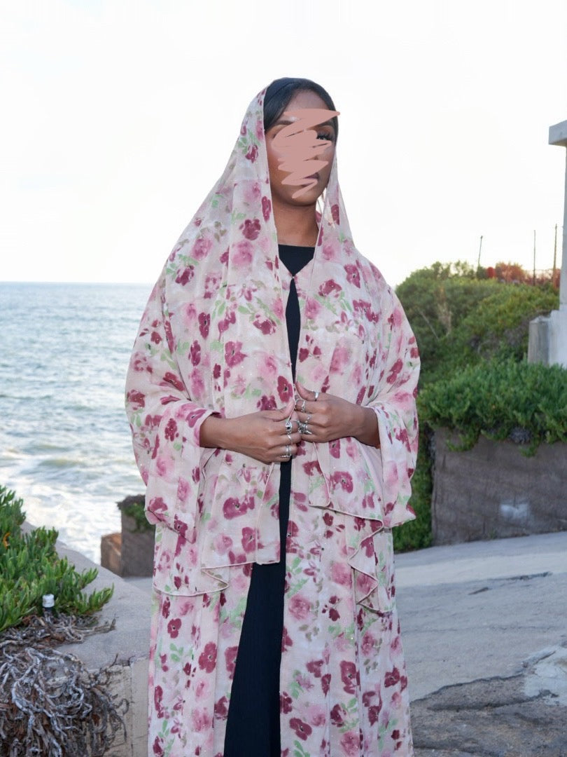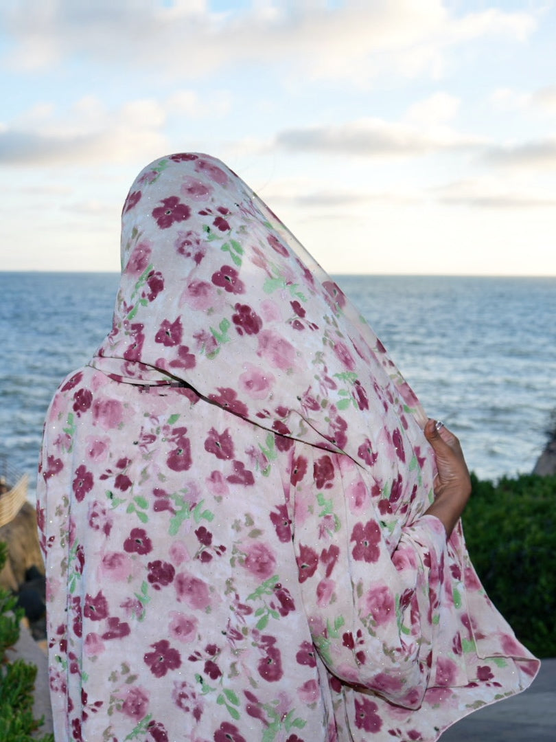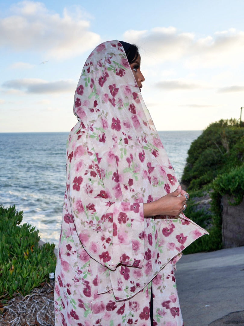 Rhinestone embellished Floral Printed double chiffon Abaya and Hijab.