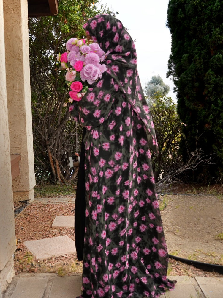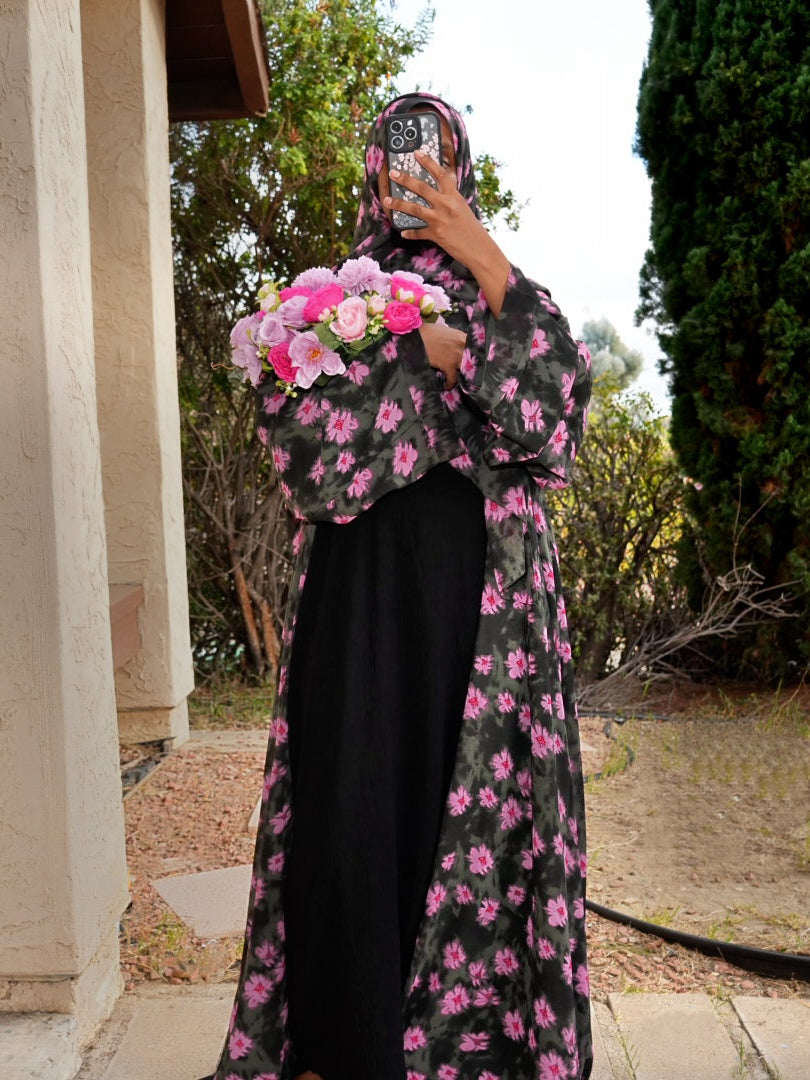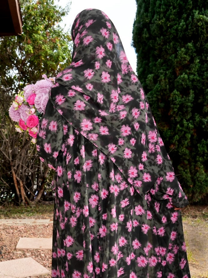 Floral Printed double chiffon Abaya, with matching Hijab.