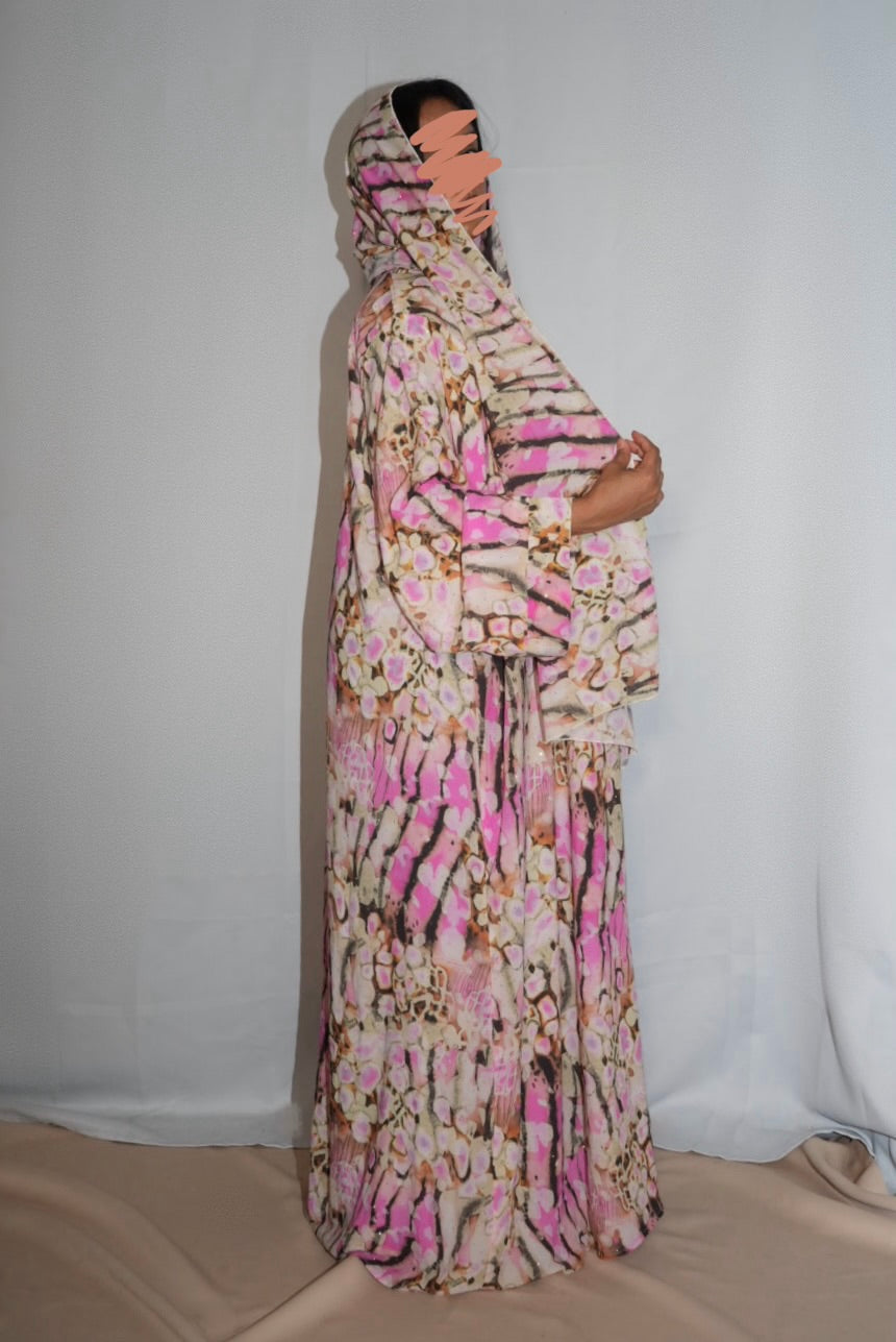 Floral Printed crepe chiffon Abaya, with matching Hijab. Rhinestone