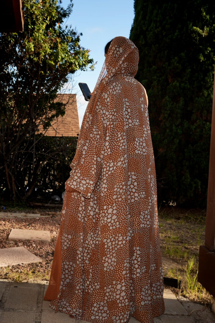 Leopard Printed double chiffon Abaya, with matching Hijab.