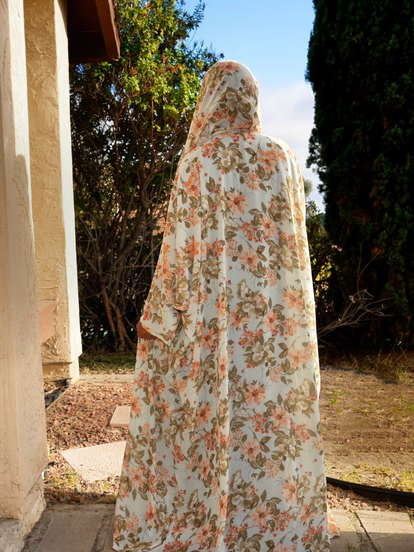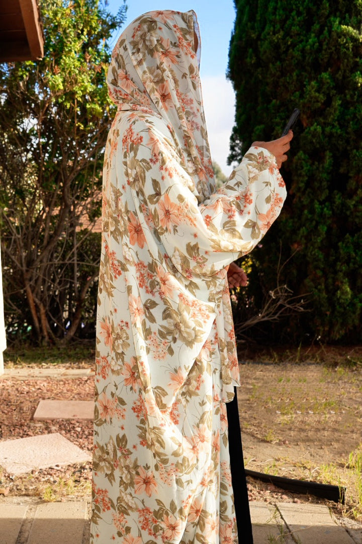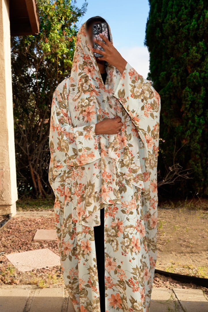 Floral Printed double chiffon Abaya, with matching Hijab.