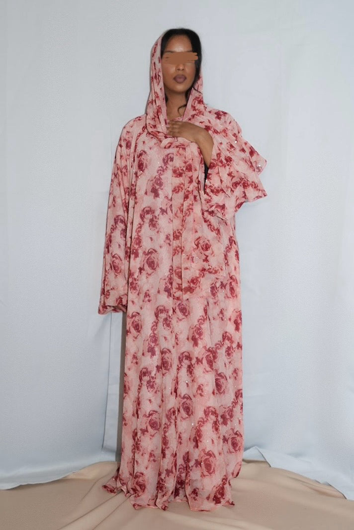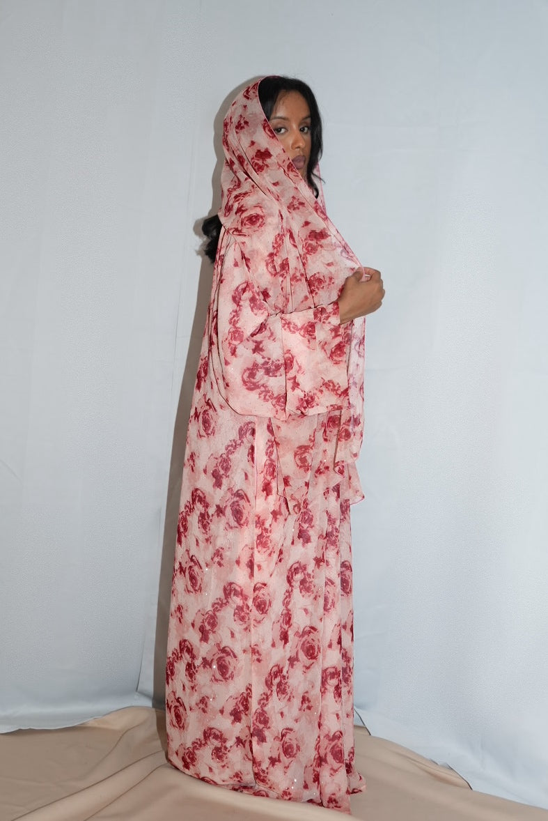 Printed double chiffon Abaya, with matching Hijab.
