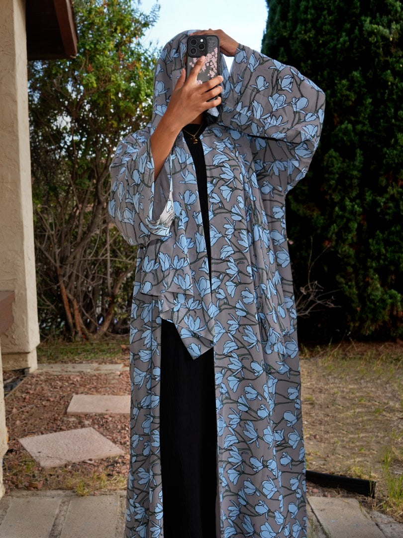Floral Printed double chiffon Abaya, with matching Hijab.