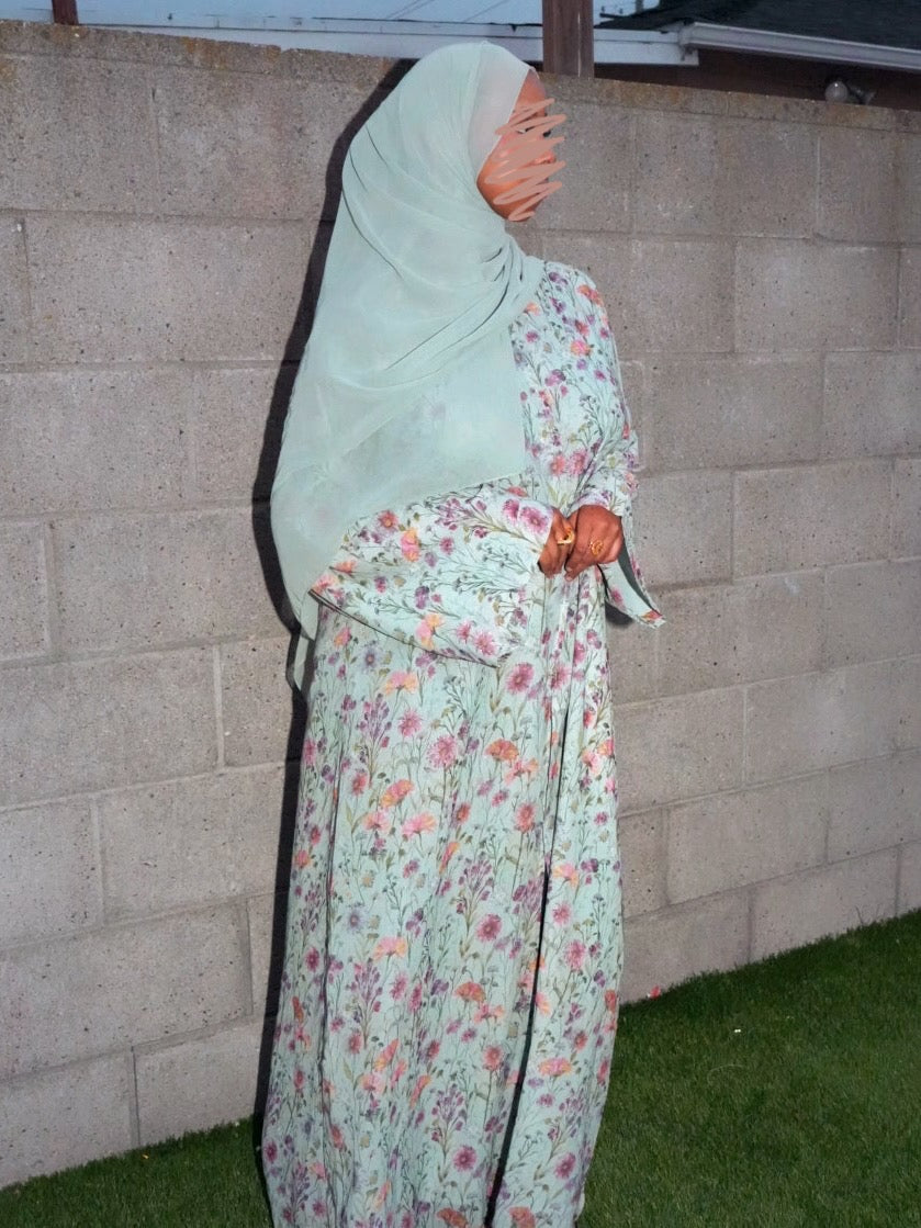 Floral Printed double chiffon Abaya and with matching Hijab.