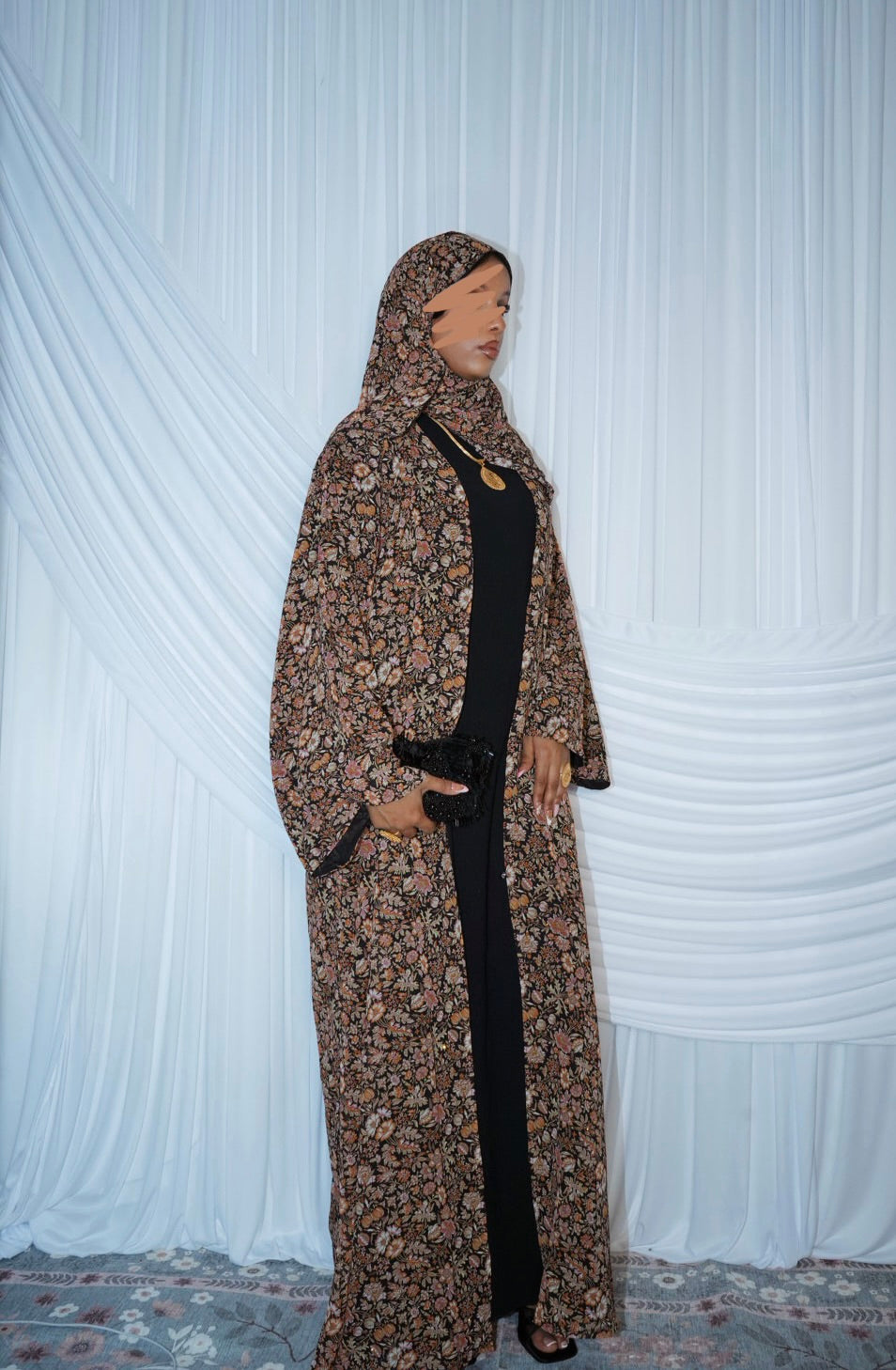 Floral printed chiffon Abaya with matching chiffon hijab.
