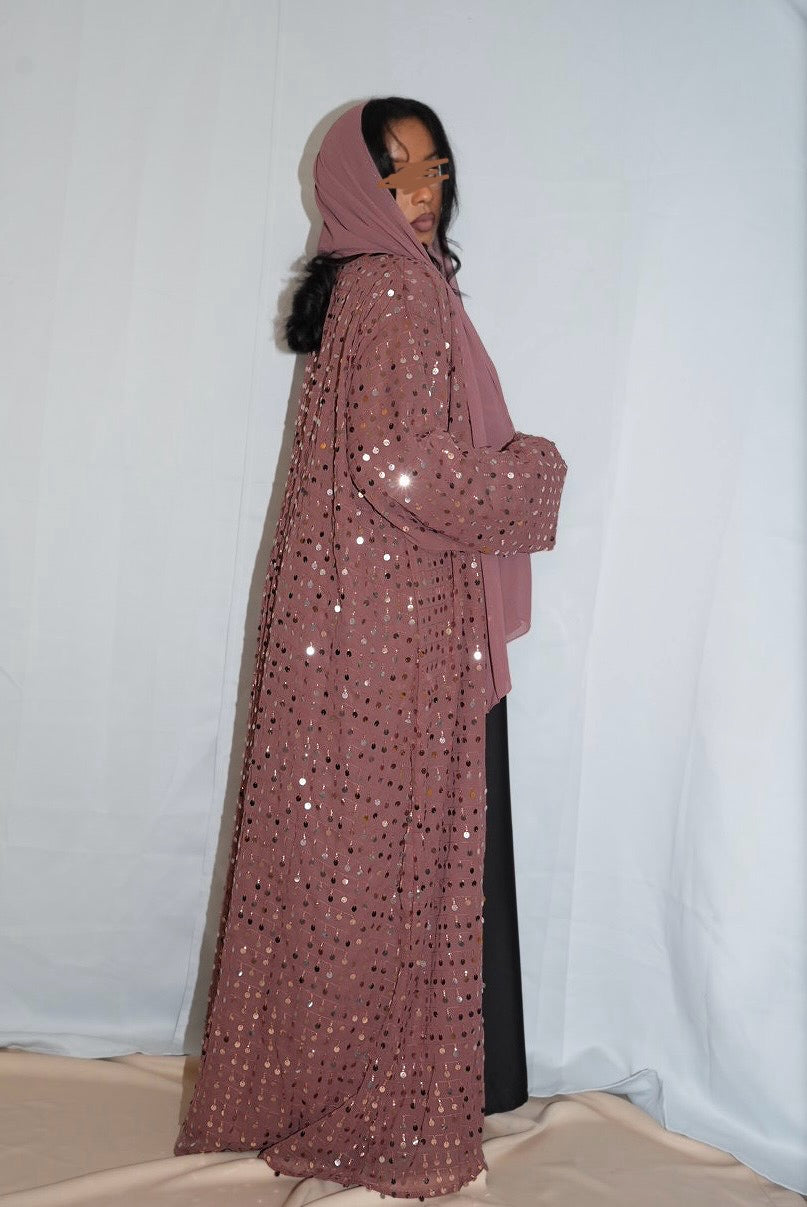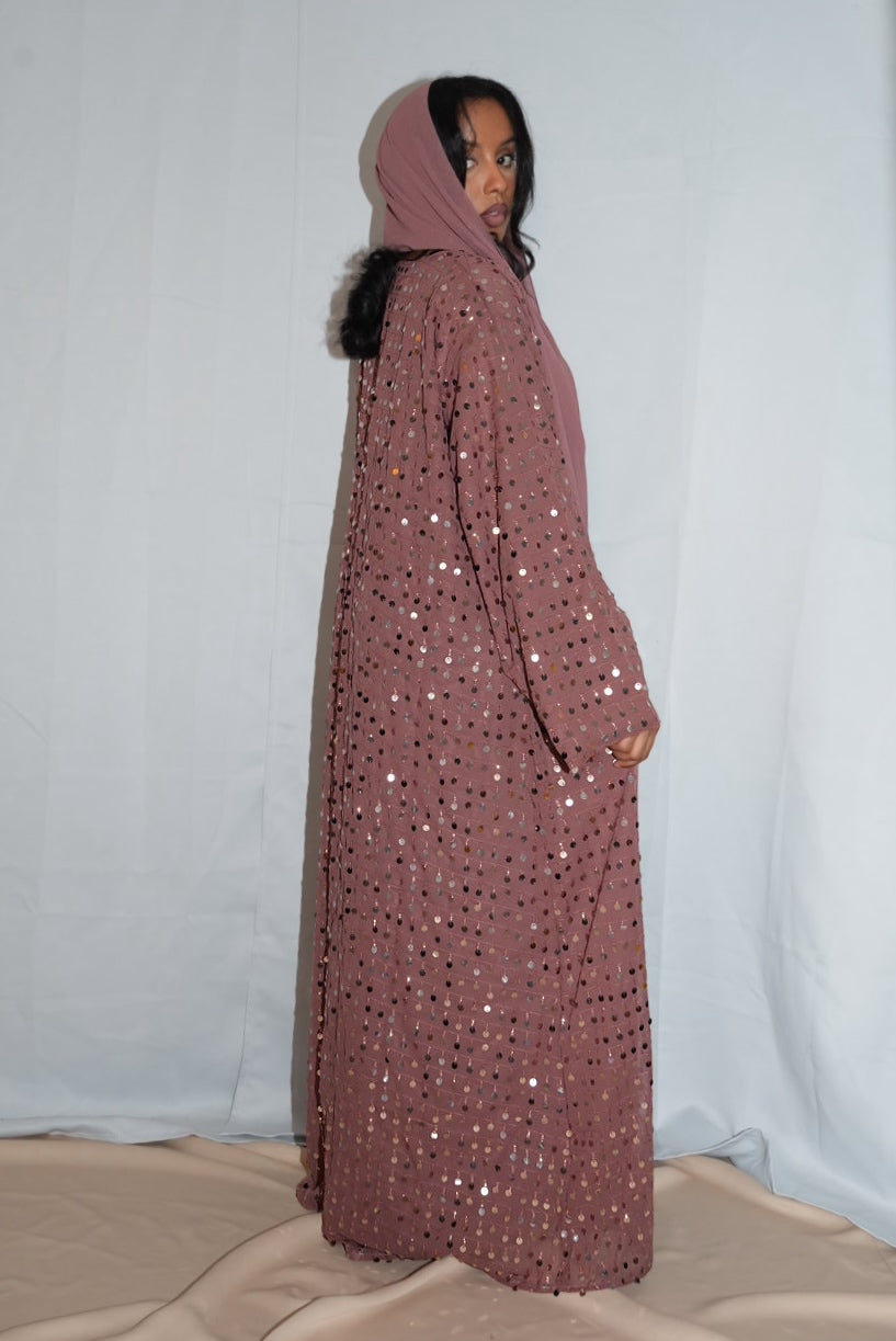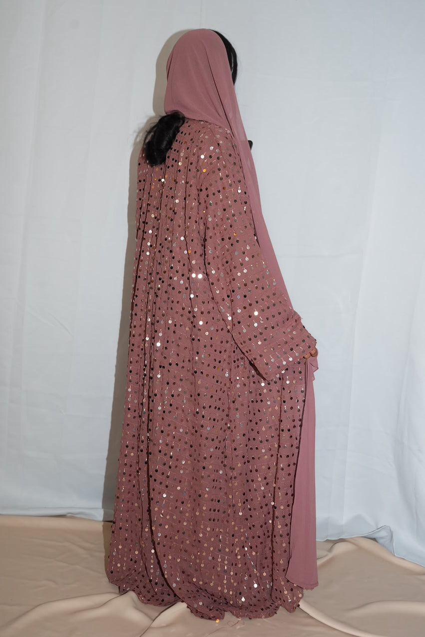 Sequin chiffon abaya, with matching Hijab.