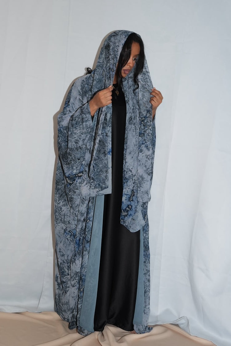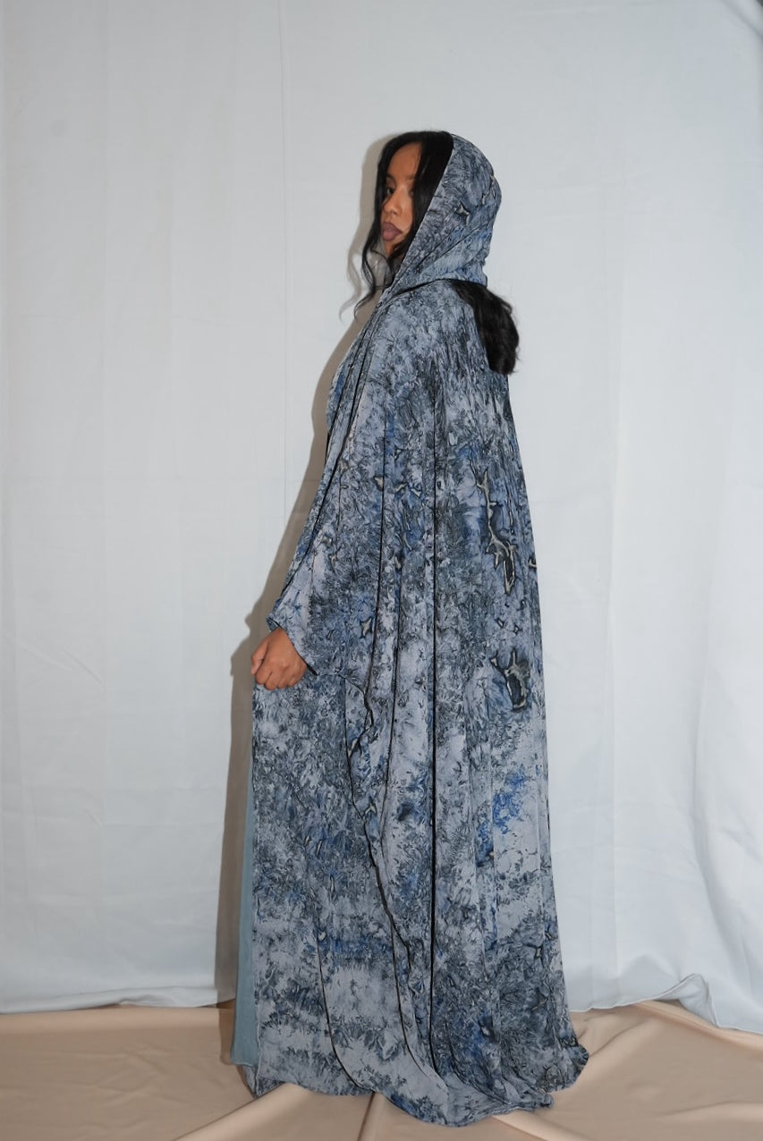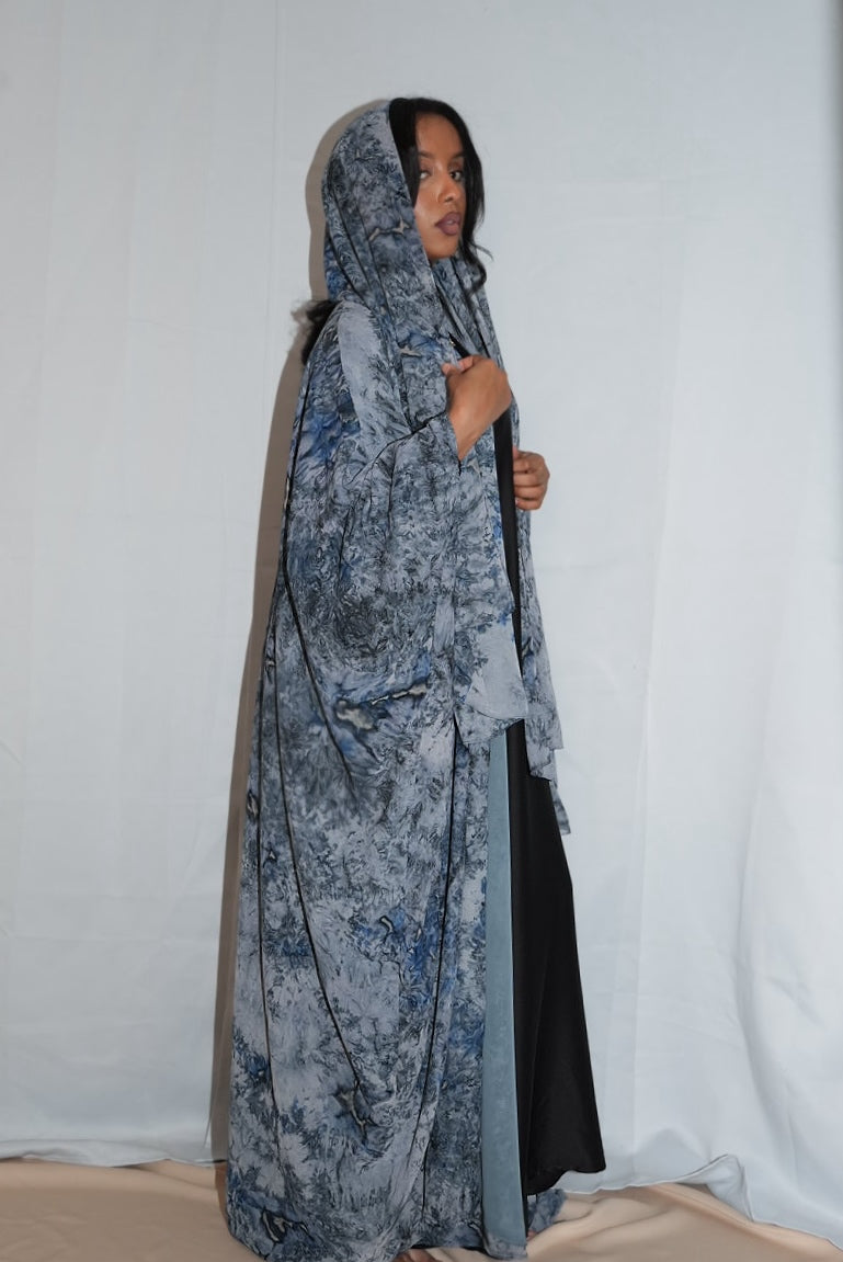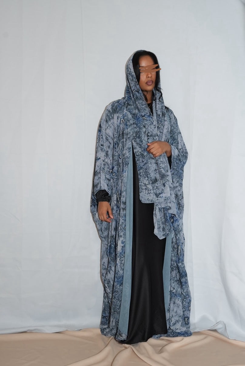 Printed chiffon Bahrain abaya, with matching Hijab.