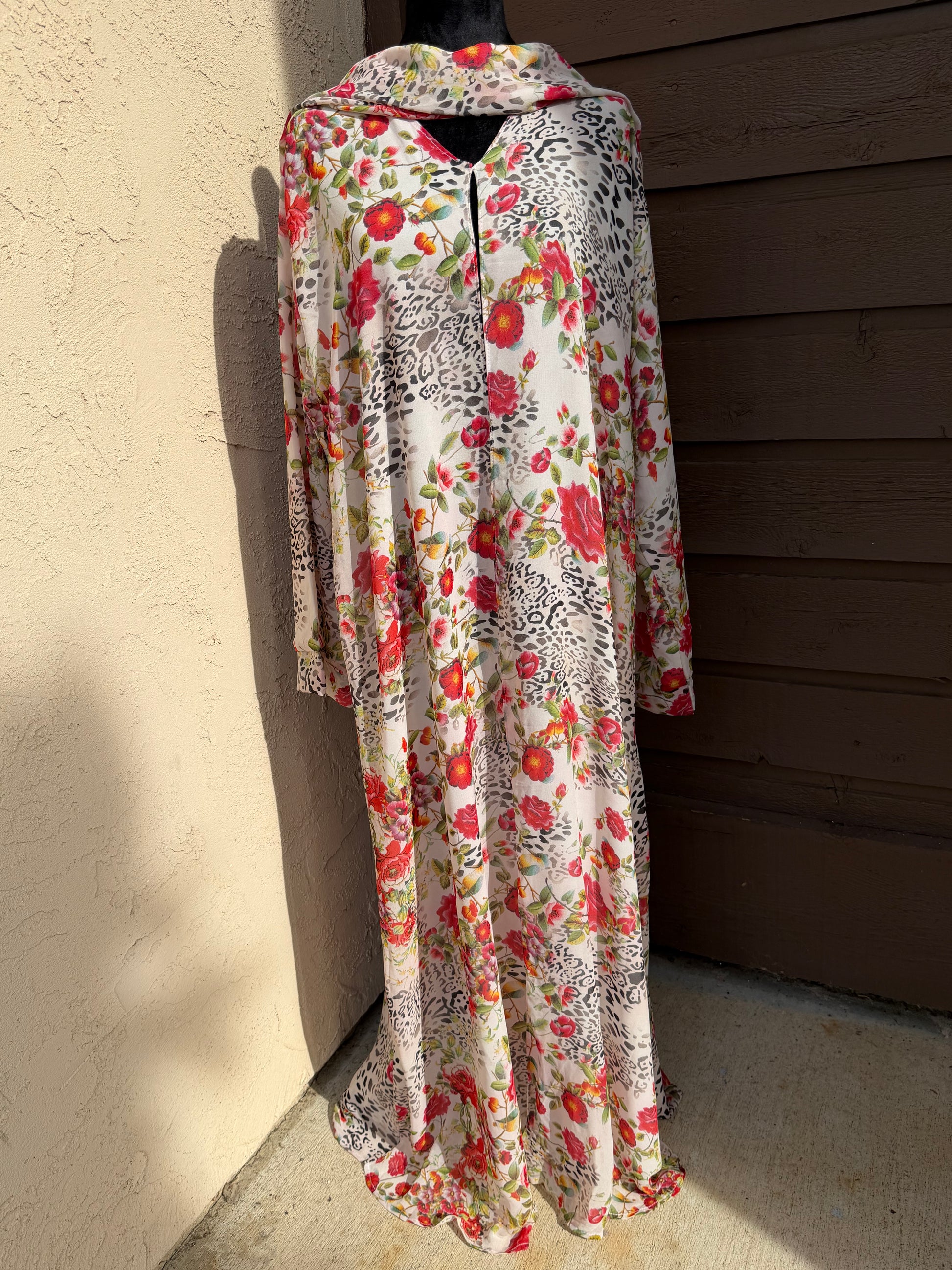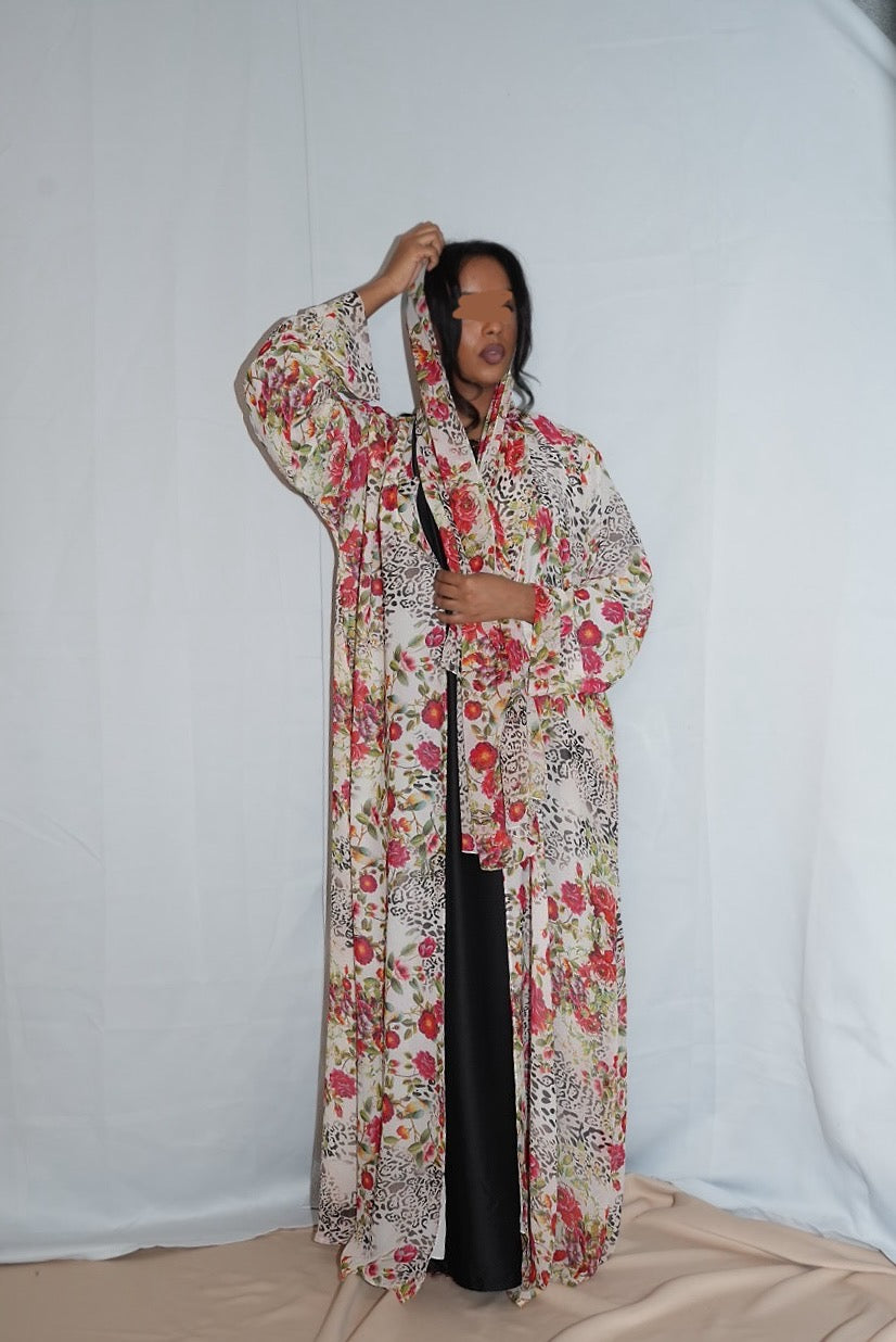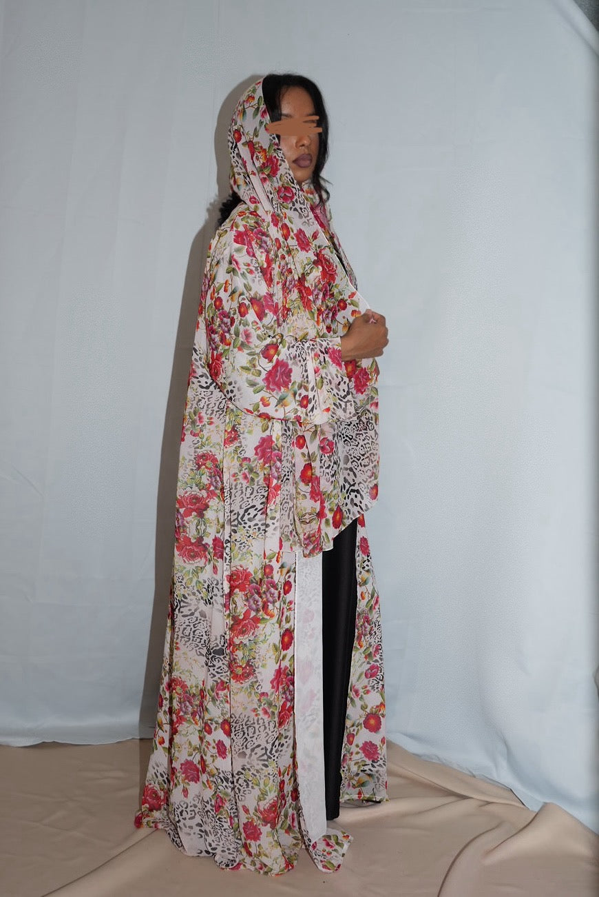 Floral and Animal Printed double chiffon Abaya, with matching Hijab.